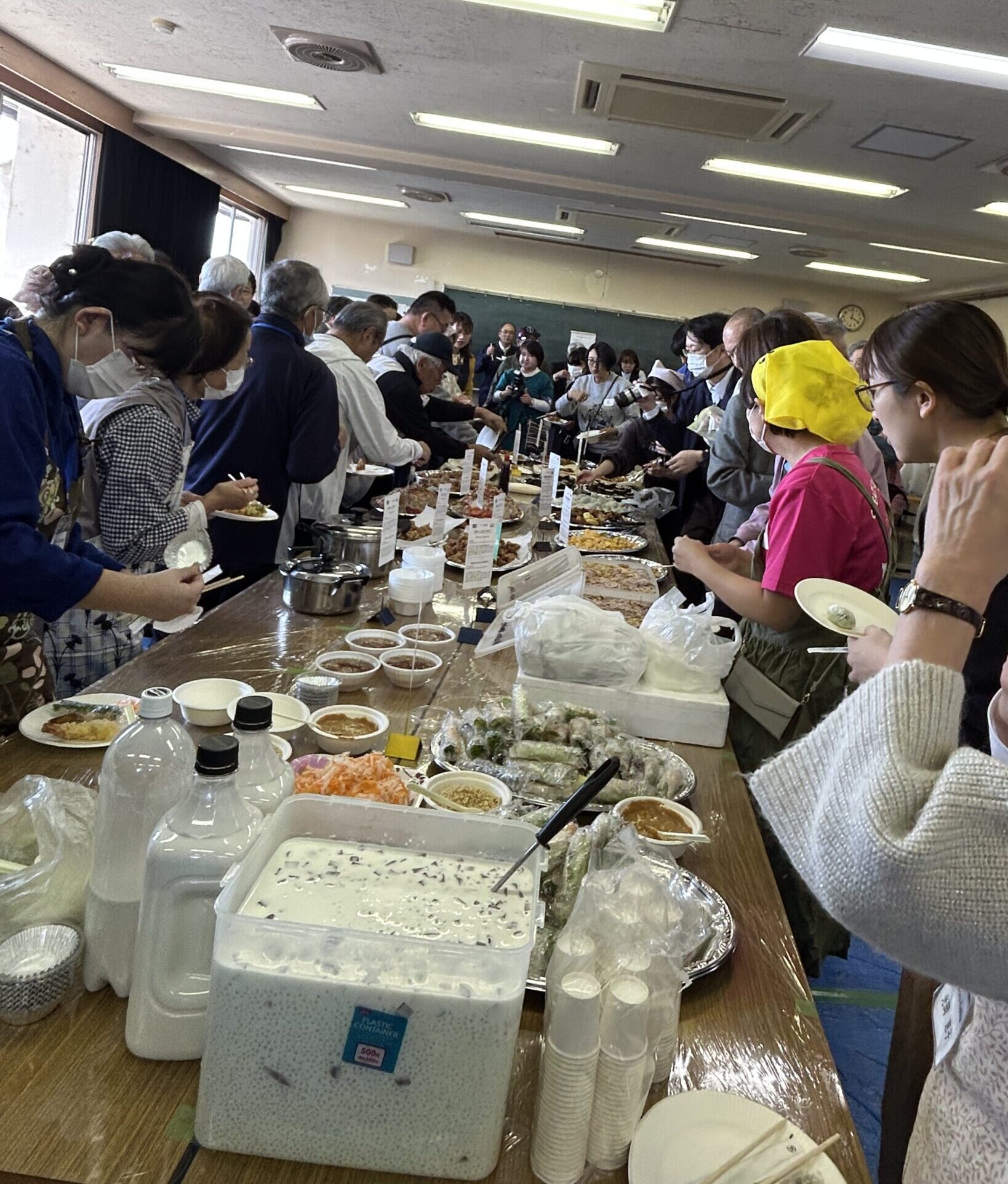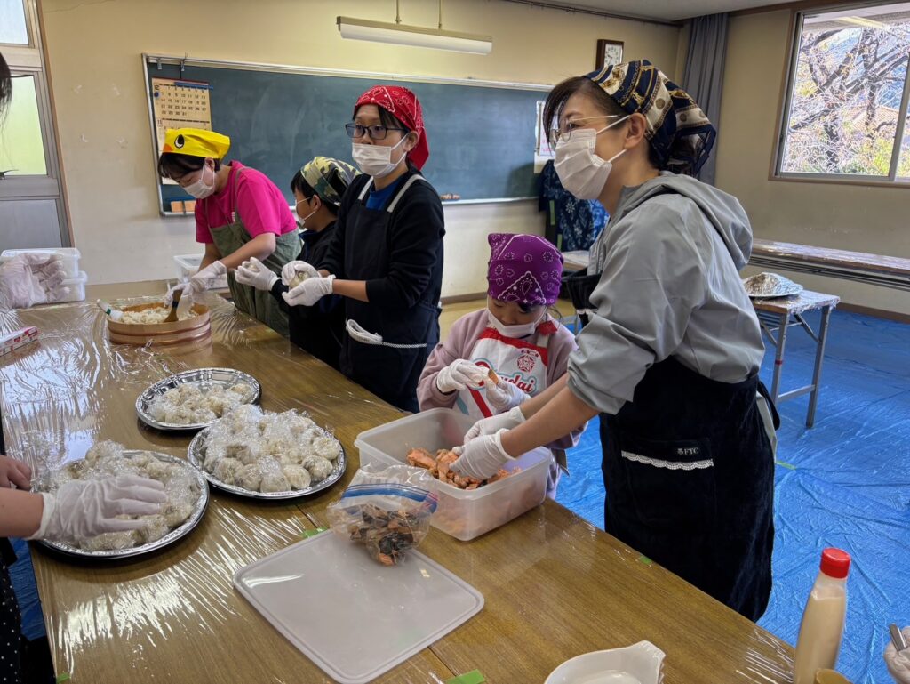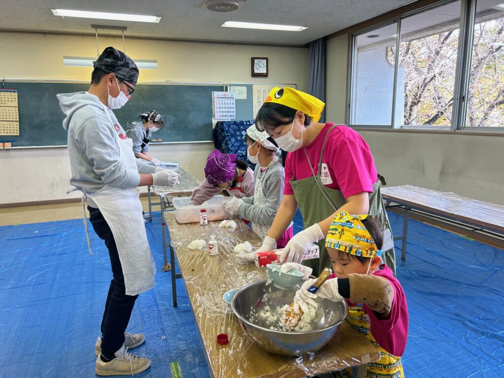 | 11月8日、桐生市北公民館で行われた、群馬大学工業会主催「第3回 留学生・大学生・市民料理交流会」に参加しました。 塾生はたくさんのおにぎりとピザを作って、200名近い参加者に食べてもらいました。 会場には世界各国の料理が並び、みんなで美味しく楽しくいただきました。 |